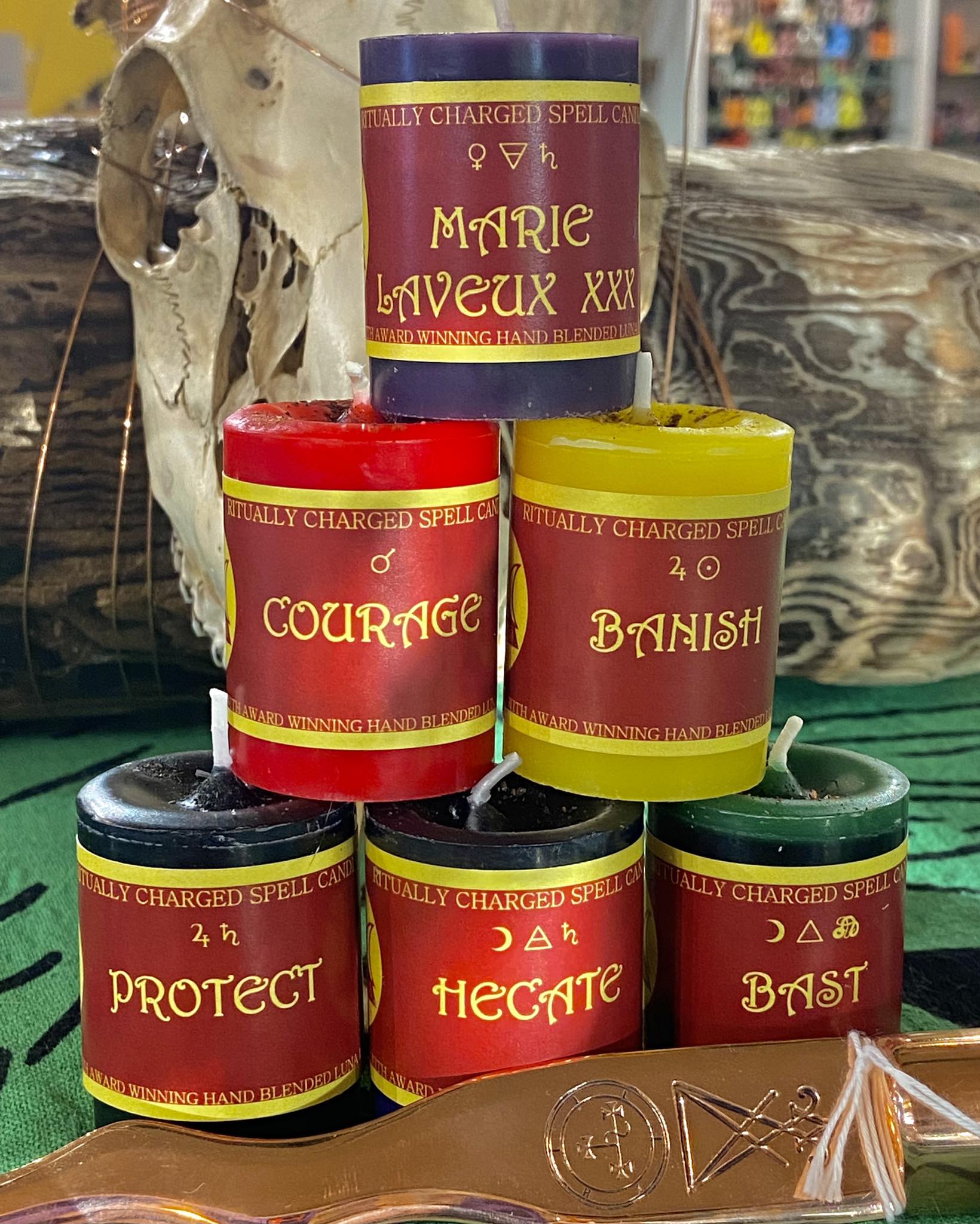 Back in 2018, Jason Mankey honored us in his famous “raise the horns” blog on Patheos Pagan by making our in-house Incense Blend – Luna Ignis – his Pagan Product Of The Year! Luna ignis witchcraft spellcasting incense uses all the wonderful things in our justly famous huge witchcraft apothecary… Fine and rare incense resins, healing herbs, witchcraft herbs, aromatherapy essential oils… To create ritually charged fine hand blended spellcasting incense blends… They are popular too! We started with about 16 original incense blends… Some devotional, some seasonal for the wheel of the year, some intentional for spell casting… And they became so popular we ship them all over the world! We expanded the range to about 60 currently! We always intended to turn them into spell and devotional candles! Why would we not?!?!... We have just been so damn busy… So finally this year we teamed up with the amazing Dark Candles LLC – makers of fine pagan and witchcraft spell candles… And asked them to take our incense blends… Finely grind them to a powder… And add them to votive spellcasting candles… With essential oils to match the key notes of each blend… And with appropriate witchcraft color correspondences… So far we have managed about 30 of the Luna Ignis range in spell votives! Super popular they are too! These were introduced in our Hartford witchcraft store and our witchcraft supplies online store in February… They are already selling like hot cakes… The other 30 will be added soon… And then the whole range of pagan spellcasting candles will be available in 4 inch pillar spell candles too!