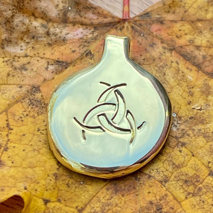 Paul’s hand crafted witchcraft pendants are very popular! They are stamped with a pagan symbol onto a blank cut by Paul by hand. They are then hand rounded on a grinder and beveled. Then burnished with a fine wire rotary wire brush and then lightly polished.