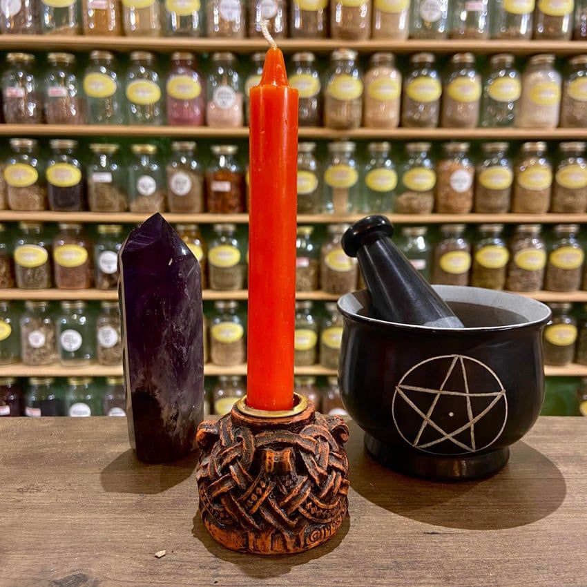 Pick the color that matches your intention, dress the candle with oils, powders and herbs if desired, or scratch words, names or symbols into the candle using an athame or one of our popular burins or candle scribes!